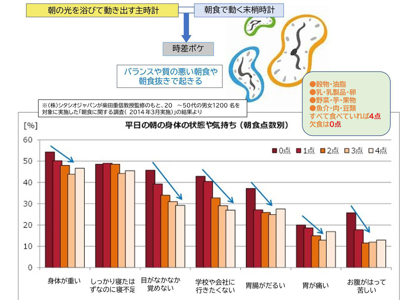 早晨对于改善身体状况很重要。此外,根据膳食质量、吃饭时间和锻炼时间,时差和睡眠可能会受到影响。我们还介绍了相对较新的发现,例如增加患糖尿病风险的可能性。