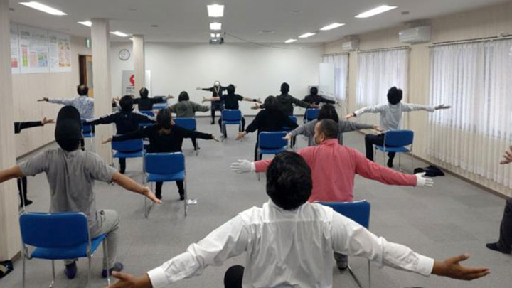 可以坐在椅子上进行的瑜伽伸展运动是由我们的健康和运动部门的部门经理进行的,他是SUP瑜伽教练和健康促进学院认证的健康促进运动教练。