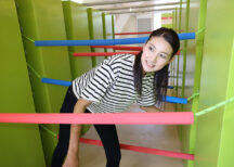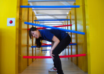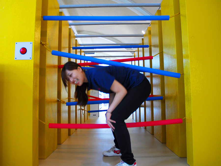 多次相交的绳索路径。来回两次,用头和身体,不要接触绳子。