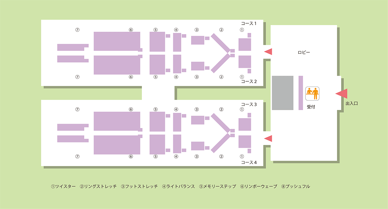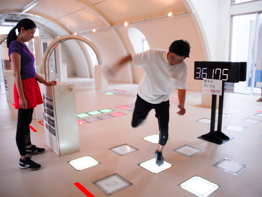 这是一个可以通过尝试7种运动器材轻松测试体力和年龄的设施。