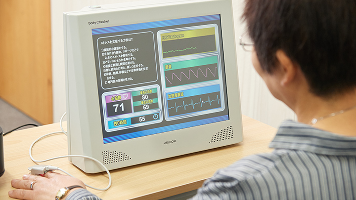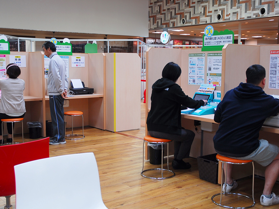 大约。15种健康检查设备(血流量/血管压力、骨量、脑年龄、肺年龄等)让您按照自己的节奏进行测量。