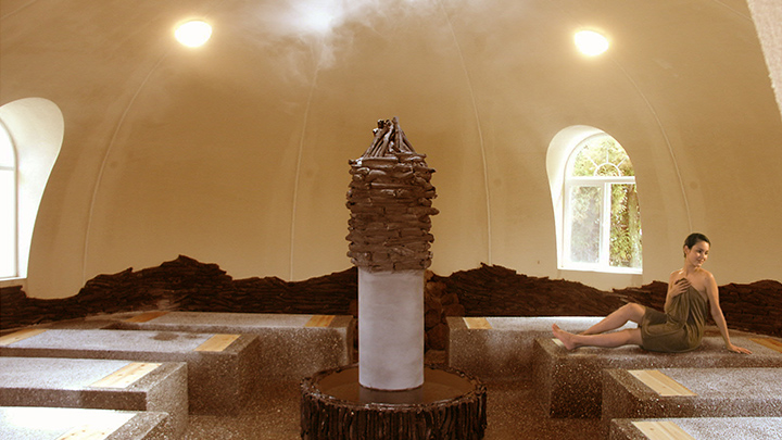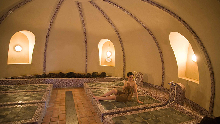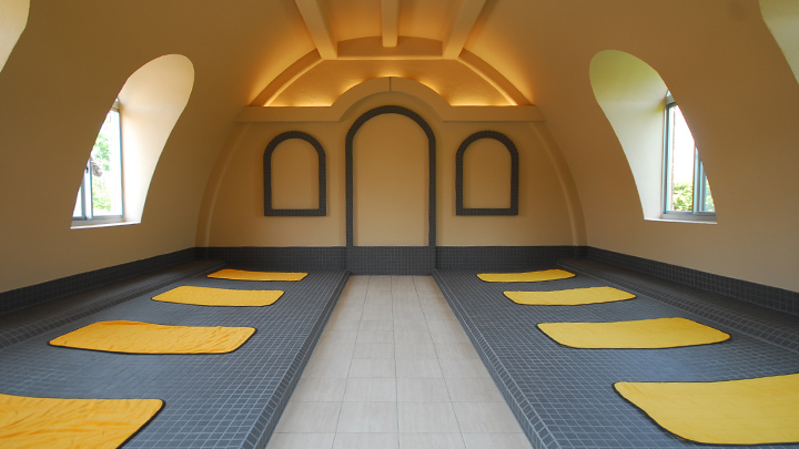 房间里充满了通过保健药石“麦饭石”传递的蒸汽,麦饭石是一种天然保健石,具有净化空气、净化水质、远红外线、负离子等功效。