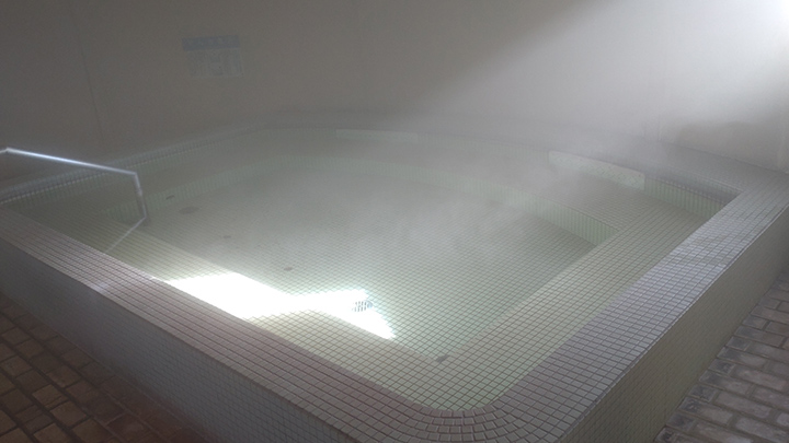 与大浴场相连的澡堂。浴缸的水温比较浅,所以可以半身沐浴。