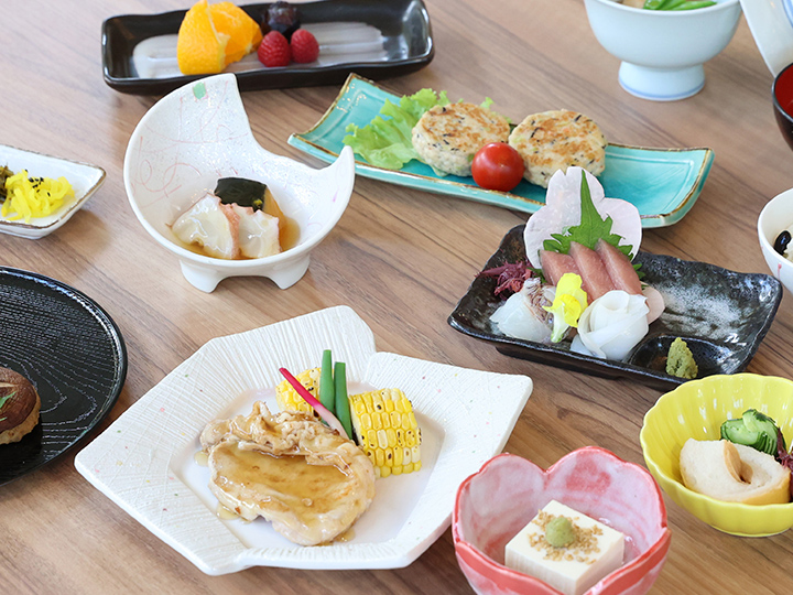 享用采用对身体温和且充满活力的时令食材的菜单。每天从我们自己的邻近阿苏健康农场运送的新鲜蔬菜都是安全种植的,没有农药。请品尝在阿苏凉爽的地下水中种植的蔬菜。