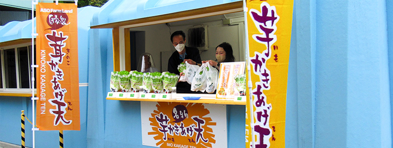 阿苏牛奶农场前的露天区域出现了一个永久摊位。