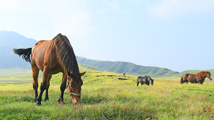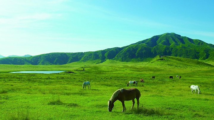 何不租一辆自行车游览阿苏的壮丽大自然呢?