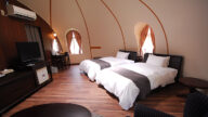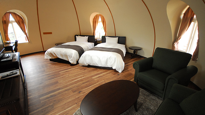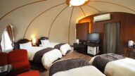 被阿苏雄伟的大自然所包围的绝佳位置。充分利用自然地形的森林中圆顶型酒店。虽然有300多间客房,但每间客房都有不同的品味。房间周围环绕着树木、溪流和来自高原的微风。