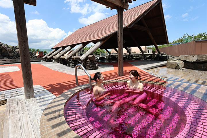 15种设计精美的健康温泉浴池1000平方米的大型温泉设施,男女皆可使用。在开阔的室外区域,您可以在150m长的木栈道上全身心地感受大自然,享受15种不同的热水浴风格。